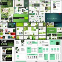 クリーン・エコなイメージの緑色をベースカラーにしたPowerPointテンプレート(20個)